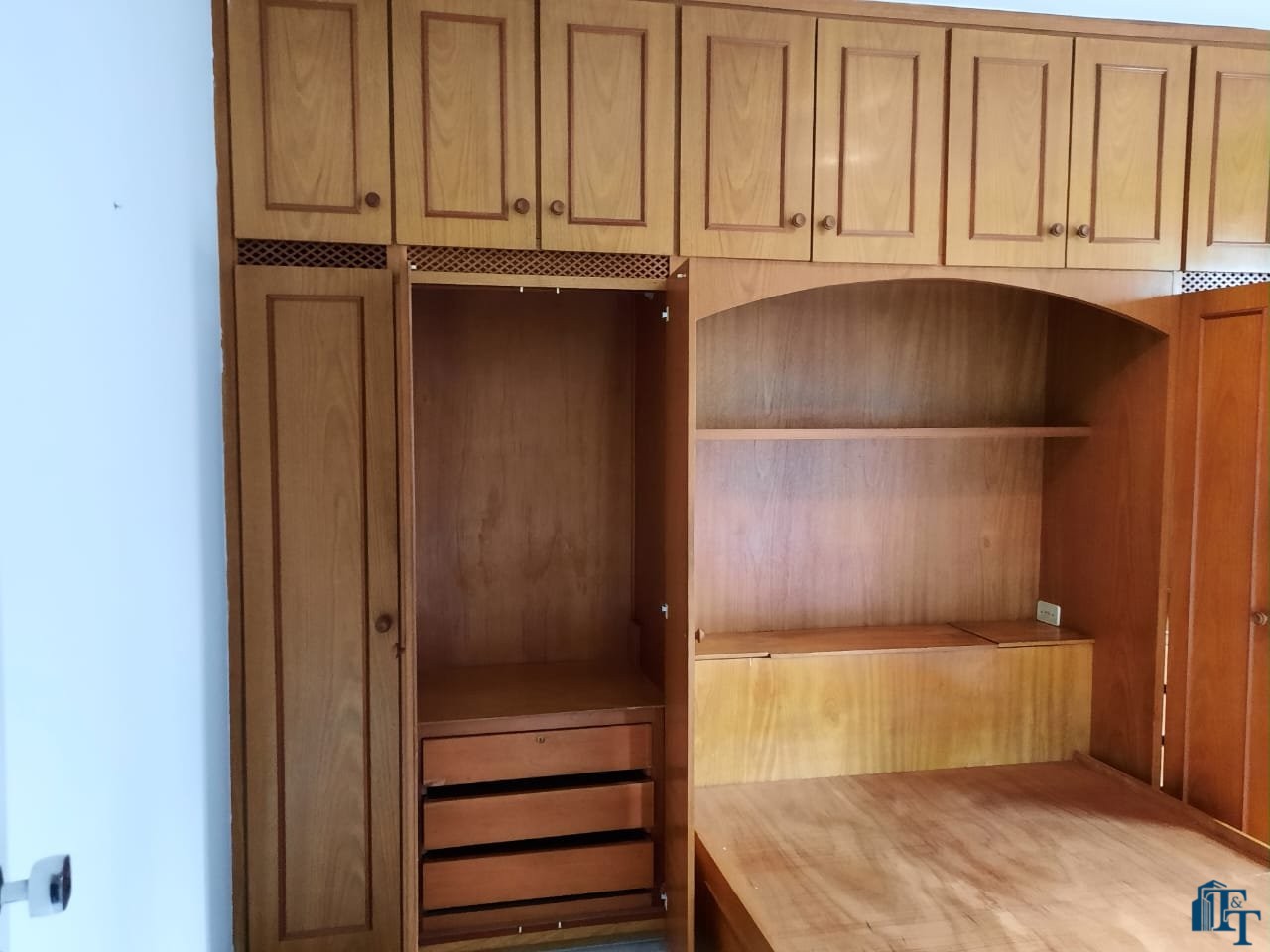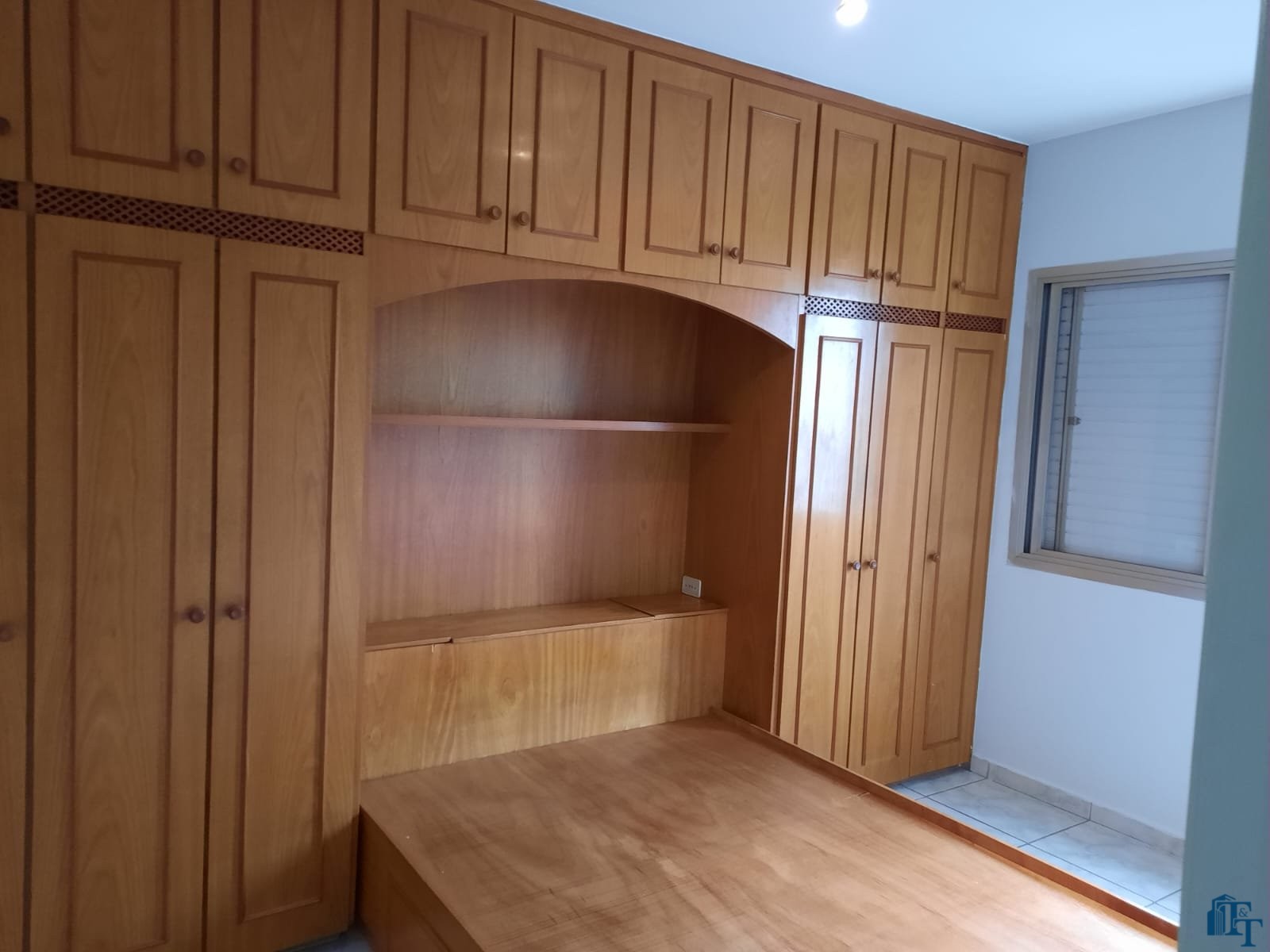 2 dormitórios, sendo que em um dos quartos tem uma conjunto com armários e cama de casal;