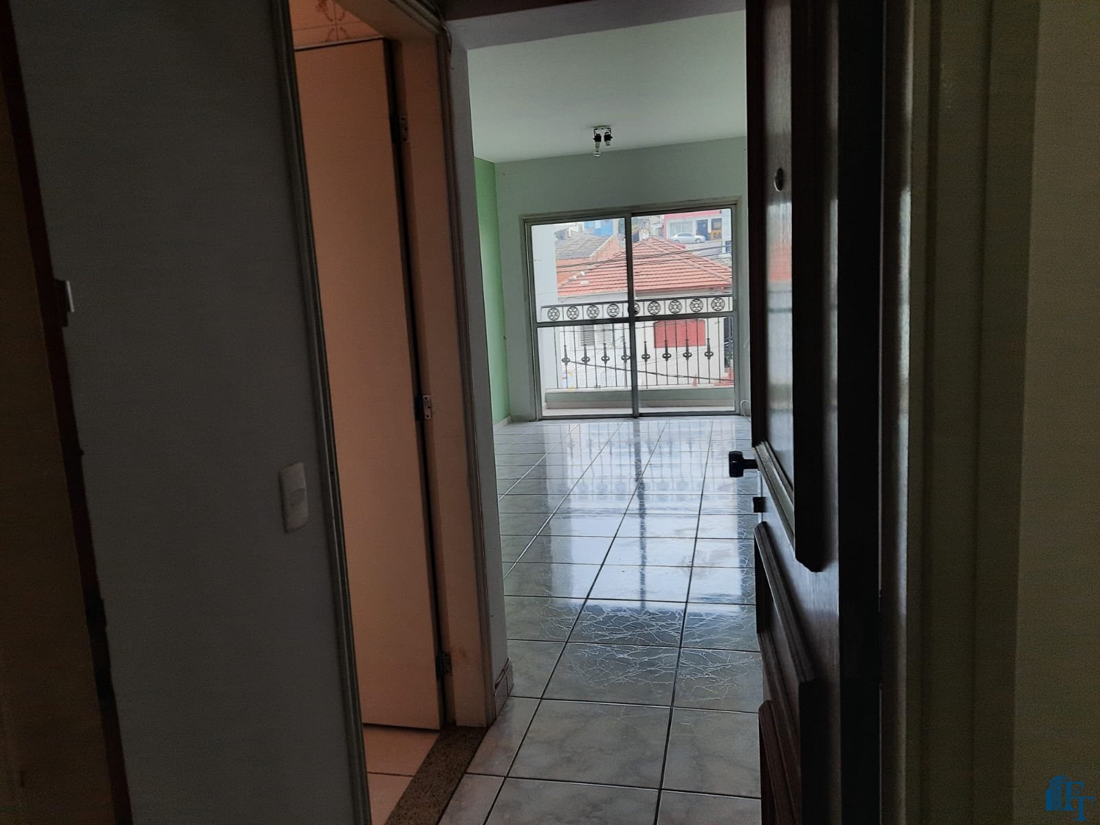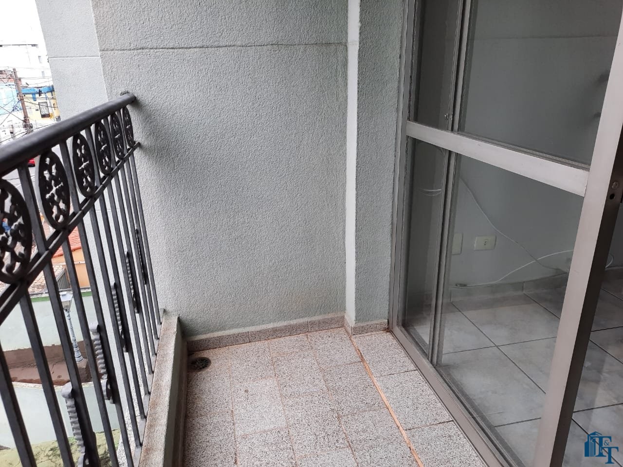 sacada grande, com porta balcão e grade em ferro decorado;