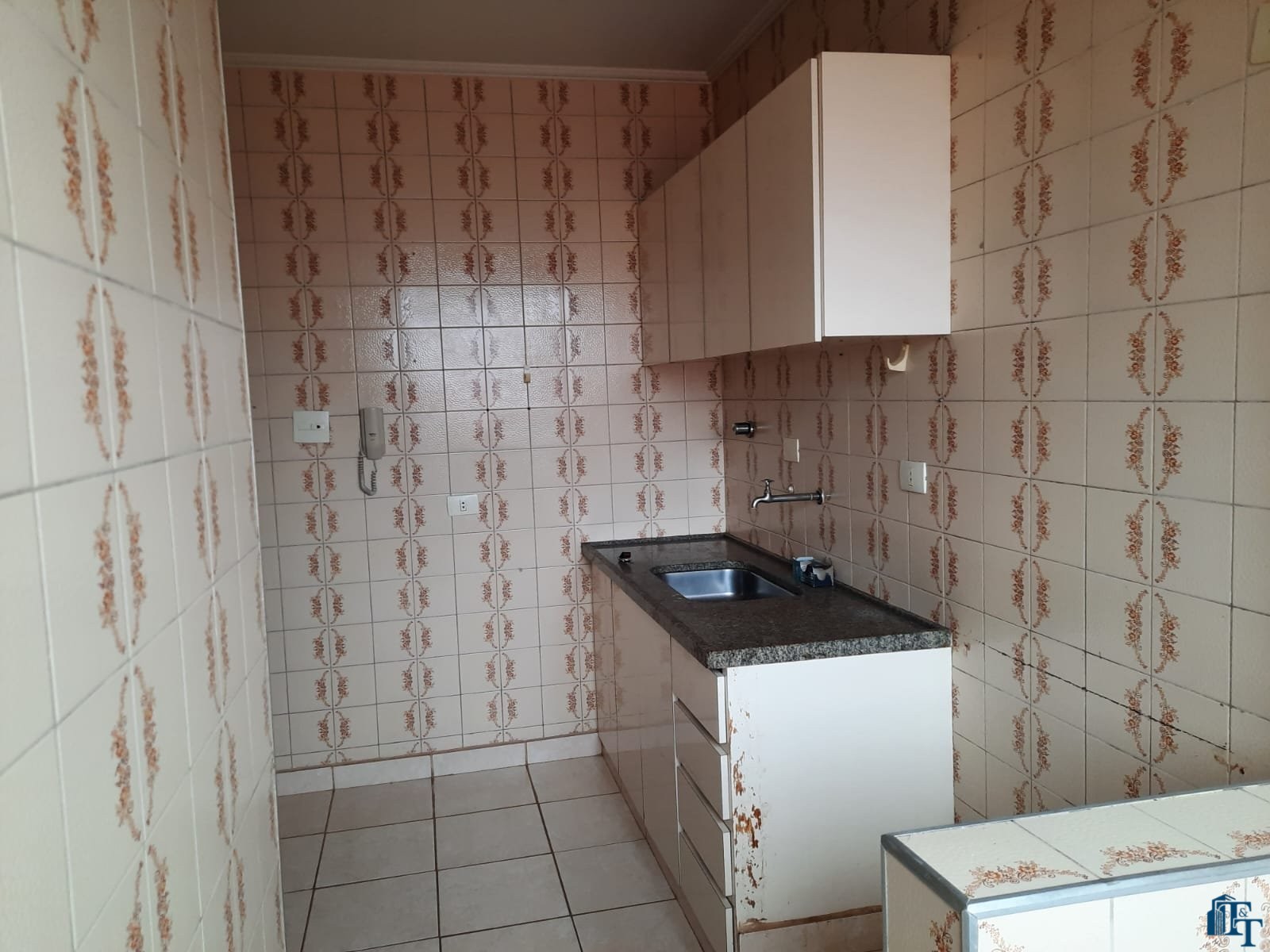 cozinha ampla com armários;