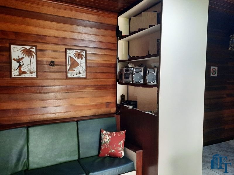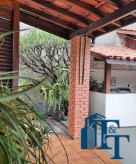 A parede da churrasqueira é revestida com pastilhas e tem armários; No quintal tem um depósito/quarto de despejo e um banheiro de apoio à área gourmet; A casa é isolada totalmente e ao redor avarandada com pilares de sustentação em tijolinho à vista; Painel da TV é em madeira.