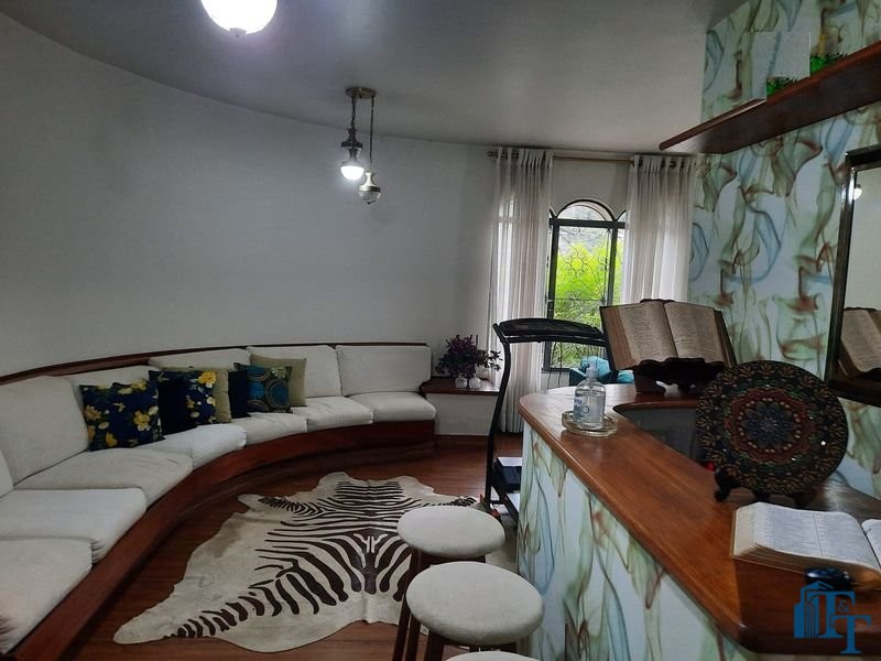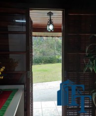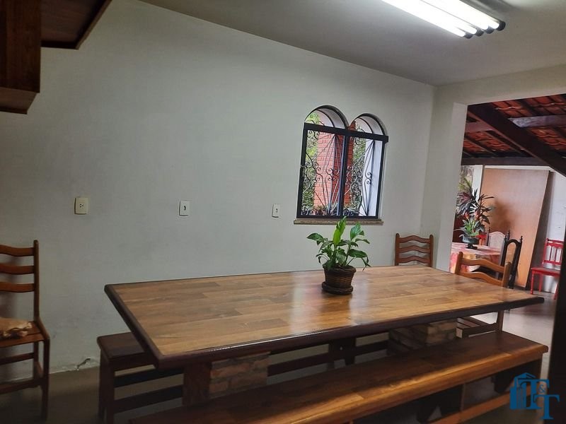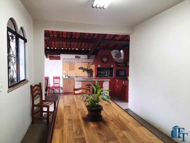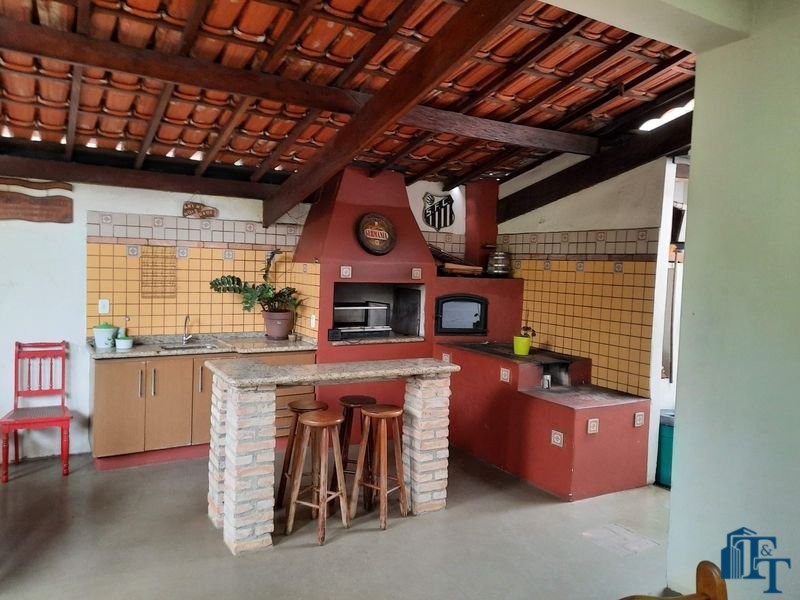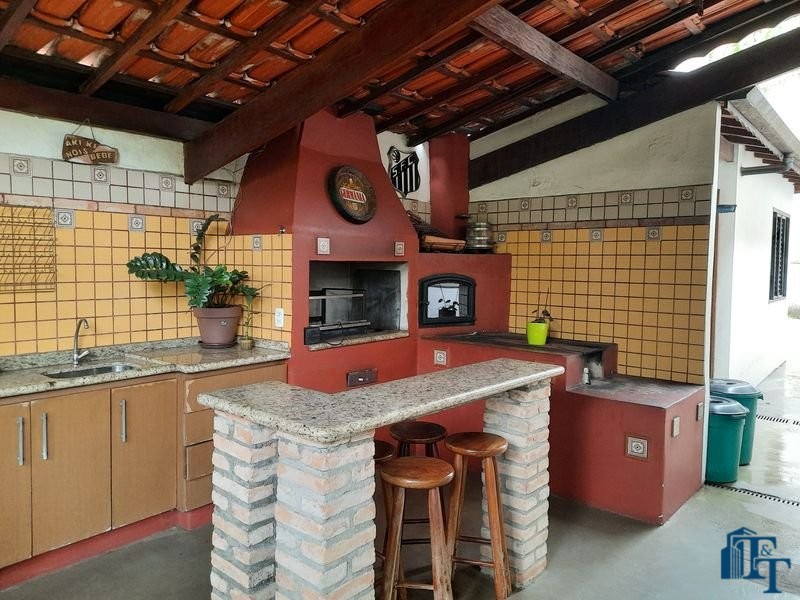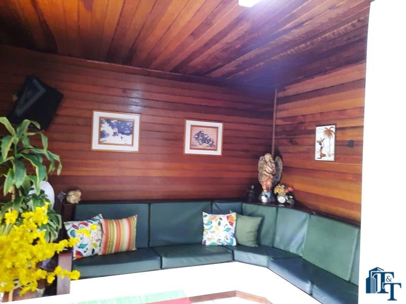 espaço de jardim e pomar na lateral da casa e na frente um extenso e belíssimo gramado; área gourmet completa, com churrasqueira forno e fogão a lenha. No espaço e em ambiente separado possui uma mesa e bancos de madeira grande para 12 pessoas e mesa auxiliar/avulsa para 4 pessoas; 1 vaga de garagem definida e coberta e mais 5 vagas descobertas(espaço amplo, que pode ser usada também para estacionamento de veículos);