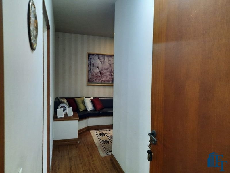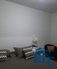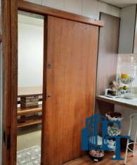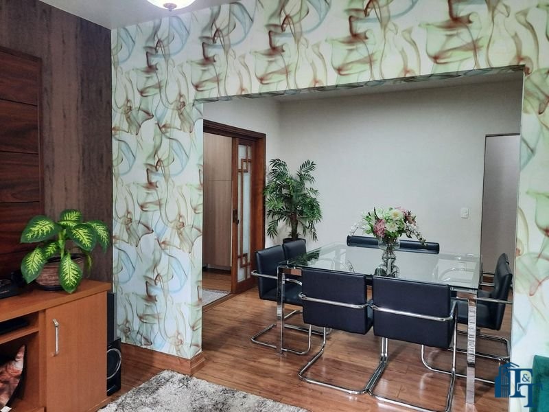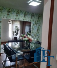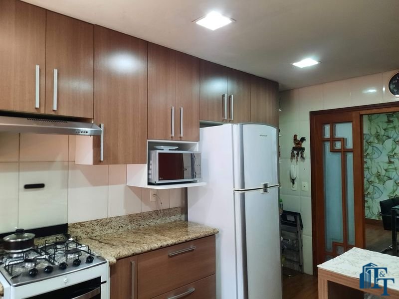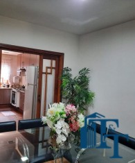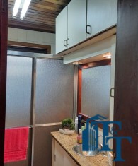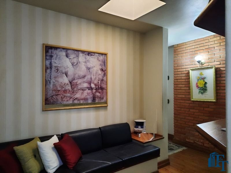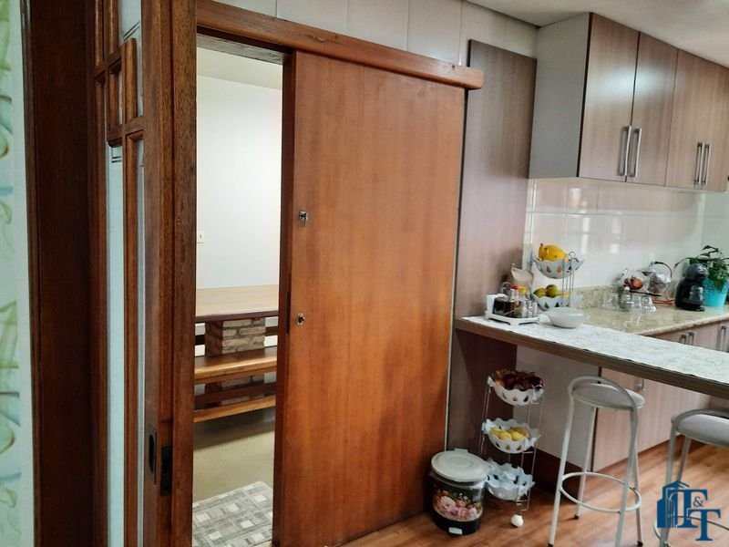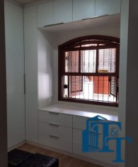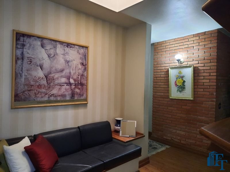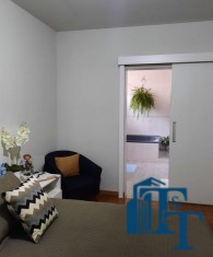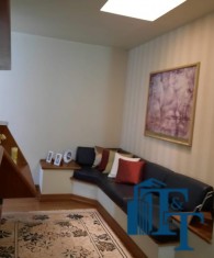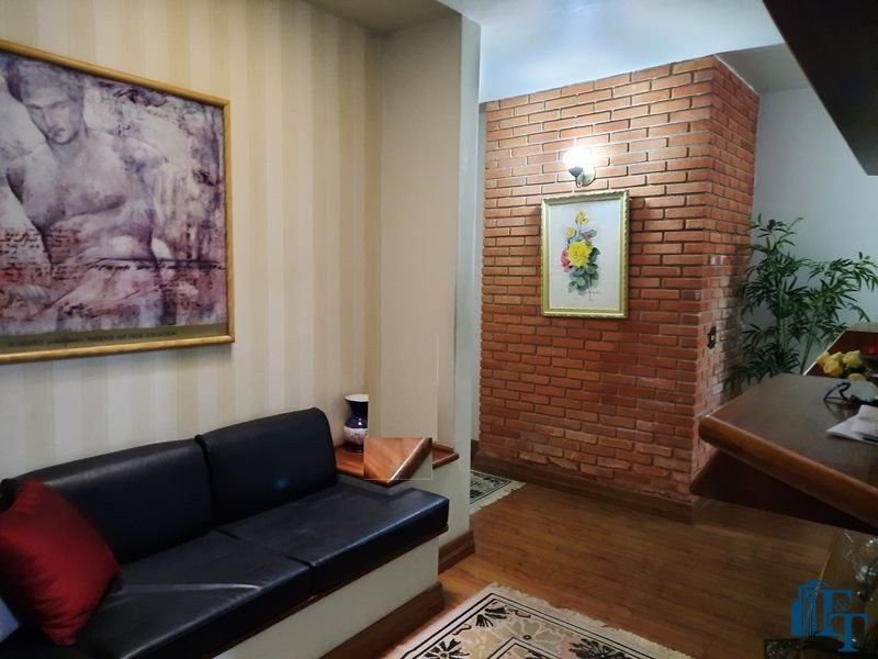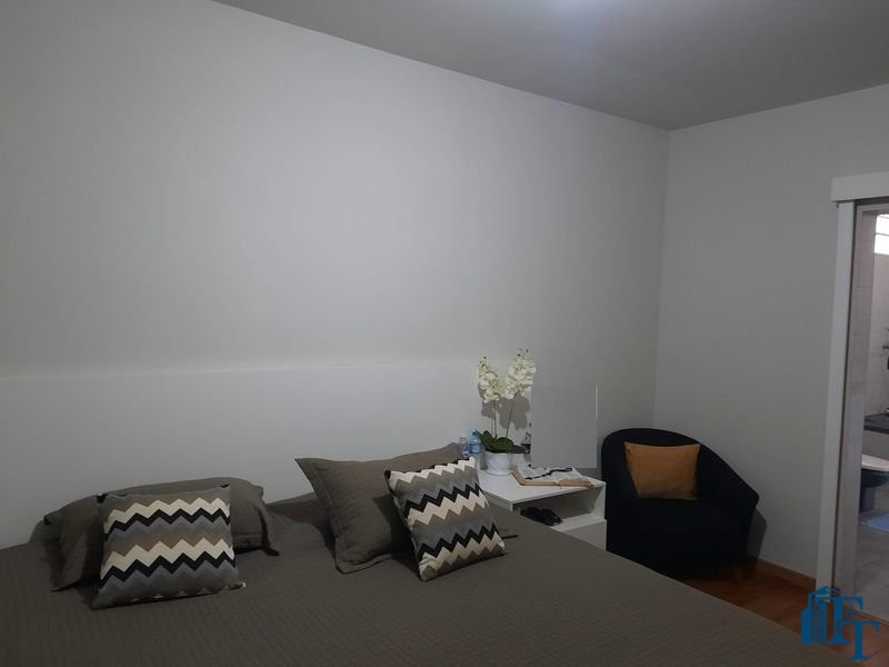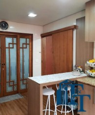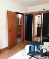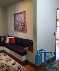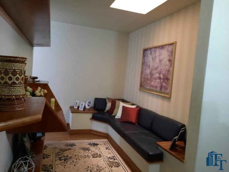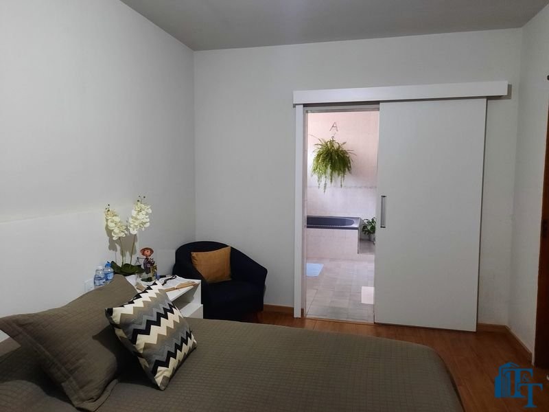 Nas salas: íntima e de estar, a estrutura dos sofás são em alvenaria e as almofadas em couro; Na sala de jantar atualmente possui uma mesa de vidro com oito cadeiras e uma porta balcão que isola a cozinha da sala de jantar; o estilo da cozinha segue o padrão de conceito aberto; um dos quartos está sendo utilizado como closet e está organizado com diversos armários planejados na cor branca; o acesso ao banheiro da suíte se faz por porta basculante branca em madeira e este banheiro da suíte é amplo e equipado com banheira para 6 pessoas e espaço reservado com chuveiro e aquecedor central; a cama da suíte tem a medida de 2x2 feita sob medida e com cabeceira branca: as portas internas são de madeira maciça; No segundo quarto tem armários e uma poltrona com puff, para relaxamento;