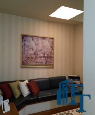 Na sala íntima a iluminação natural ocorre por Domus;