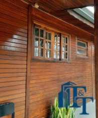 Casa de madeira naval com 1 dormitório, sala, cozinha e banheiro. Mobiliada e decorada.