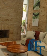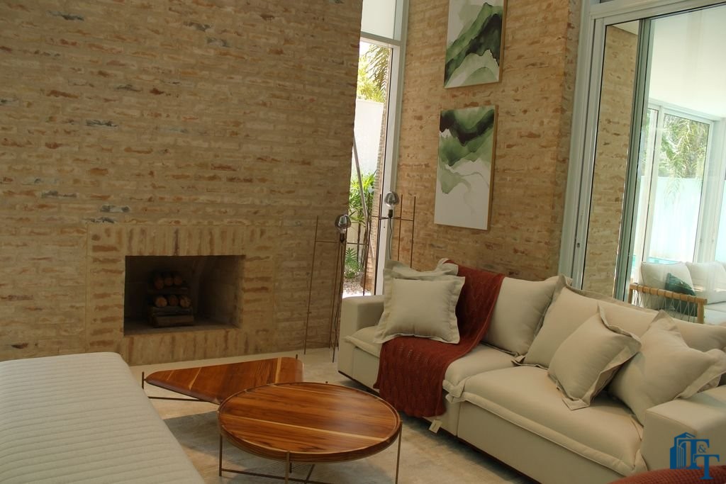 Sala com 3 ambientes integradas ao hall social, com lareira na sala de TV;