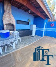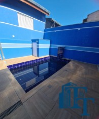 São 3 dormitórios, sendo 1 suíte com closet e terraço, banheiro social ((4 banheiros no total), lavabo, cozinha americana (conceito aberto), lavanderia coberta, corredor, sótão e garagem para 2 carros coberta e 2 vagas descoberta. Na área externa uma belíssima piscina e área gourmet coberta e toda equipada, com churrasqueira de tijolinhos e pia.