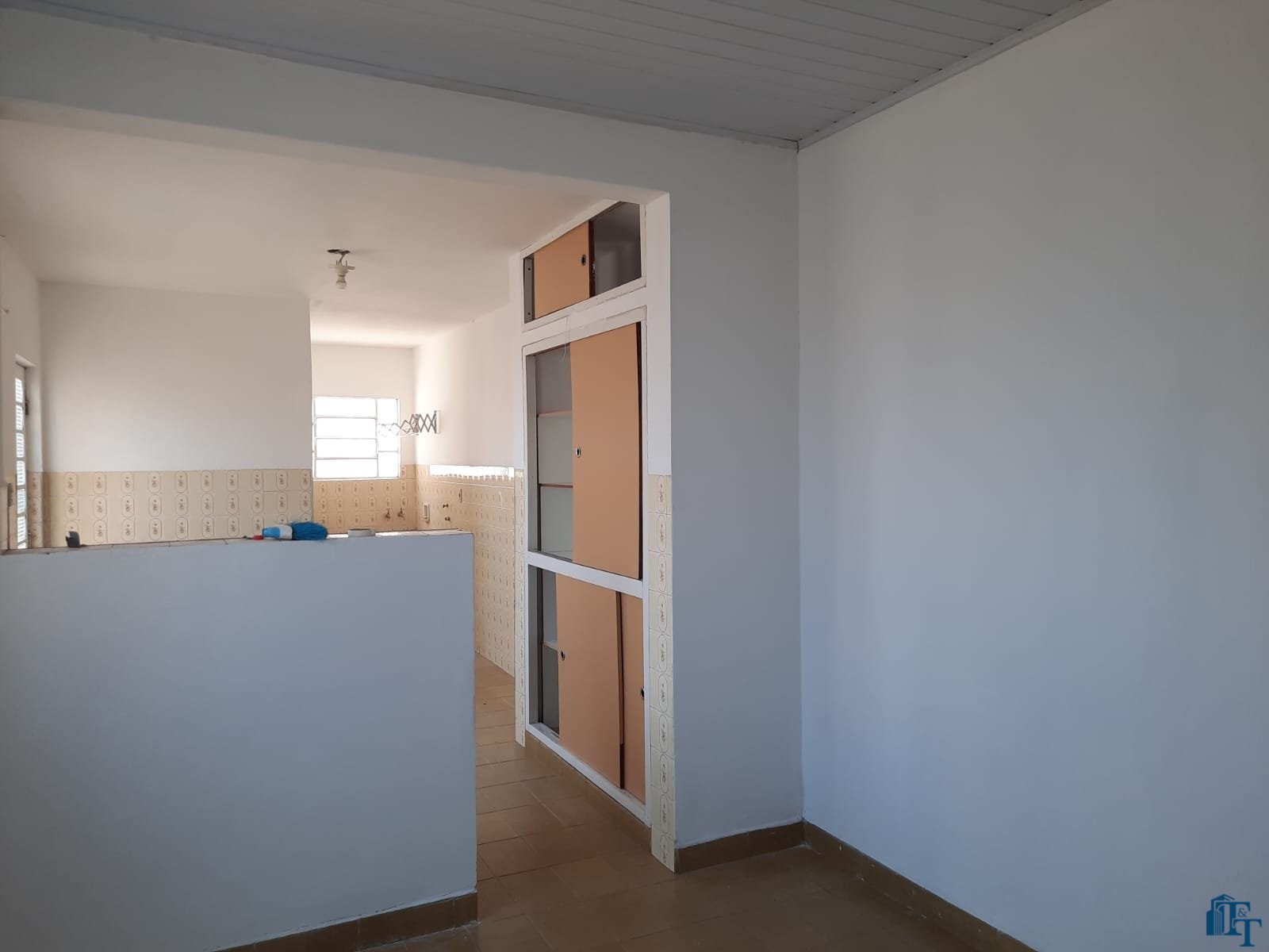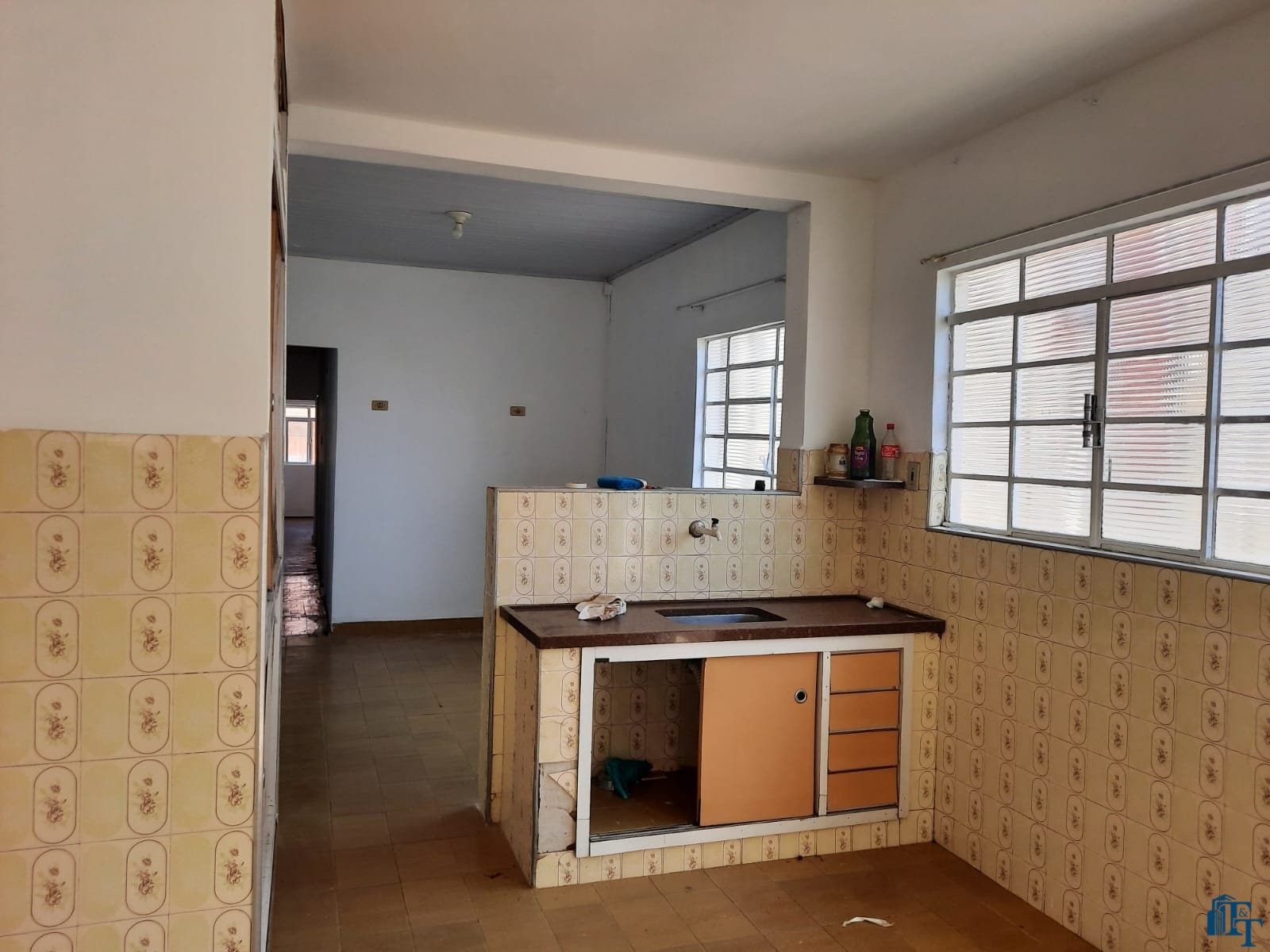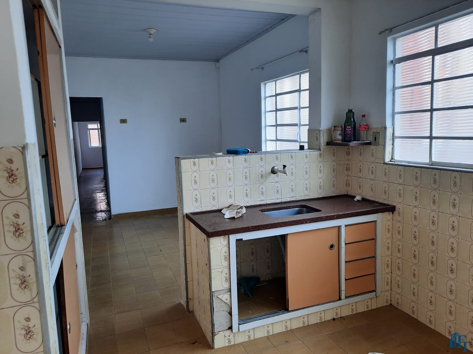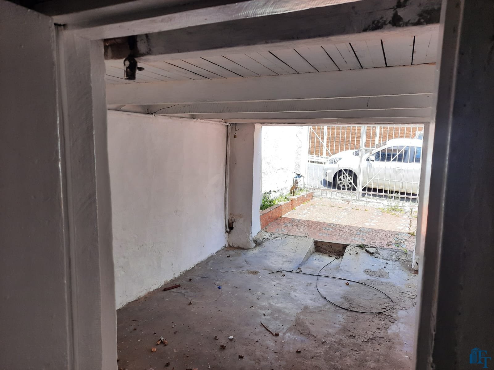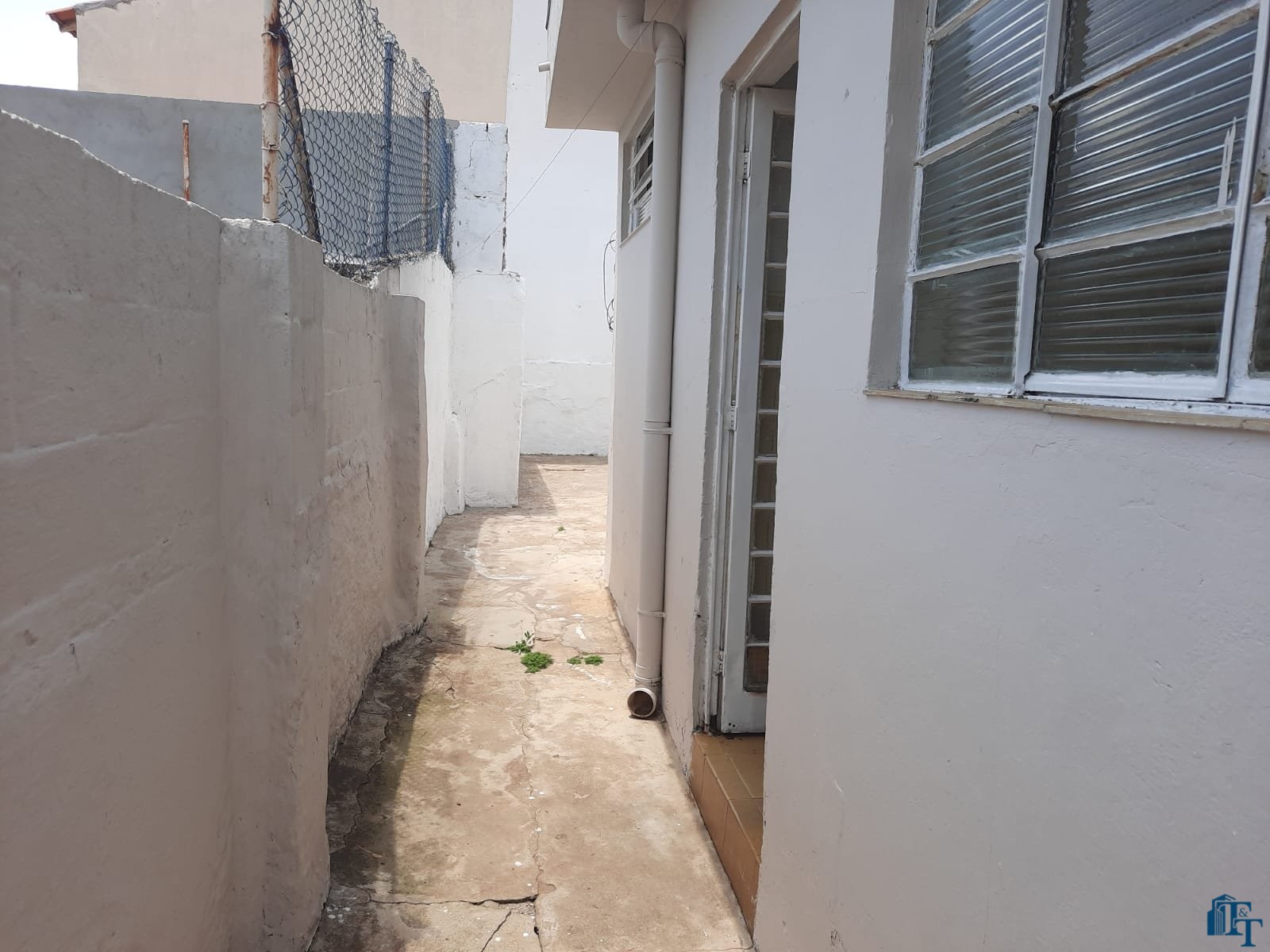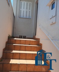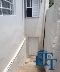 grande, corredor com acesso a cozinha e porão (saída de serviço) . Na frente 2 vagas de garagem, sendo uma coberta e outra descoberta. No banheiro social podemos contar com pia torre, box e espelhos. Para os dormitórios, sala, copa/sala de jantar, corredor a cobertura é de forro e a telha é de fibrocimento e para a cozinha, lavanderia e banheiro a cobertura é de laje. Portanto, o acesso à casa ocorre por portão grande da garagem e as portas com entrada social (porta de madeira maciça e de serviço (acesso pelo porão/garagem).