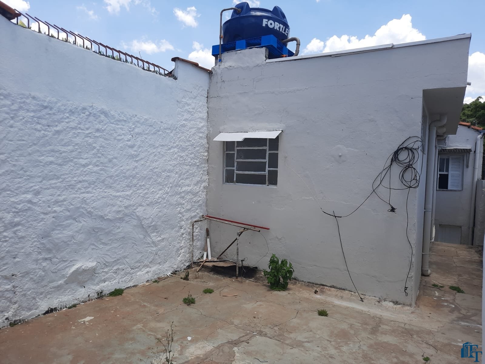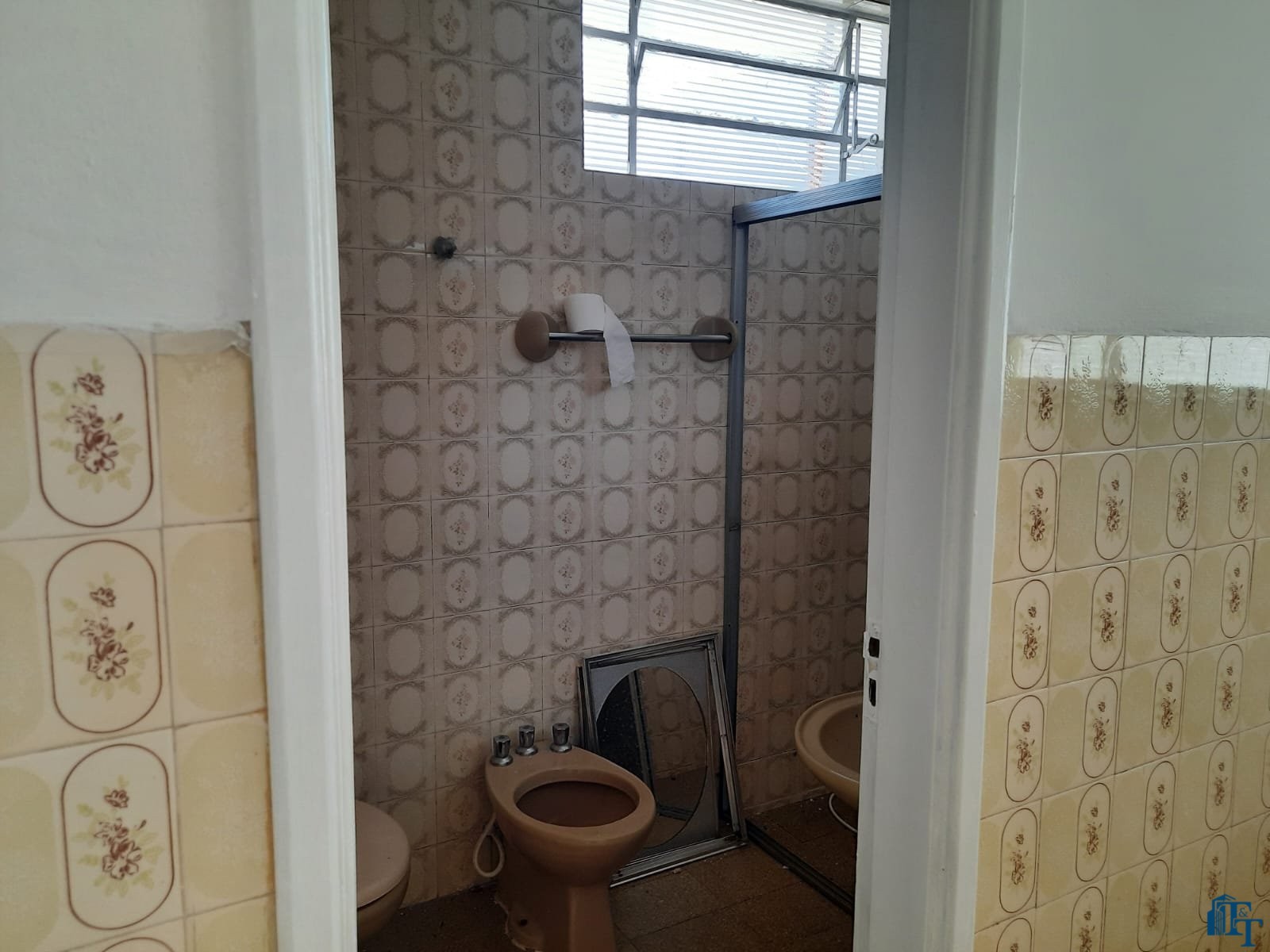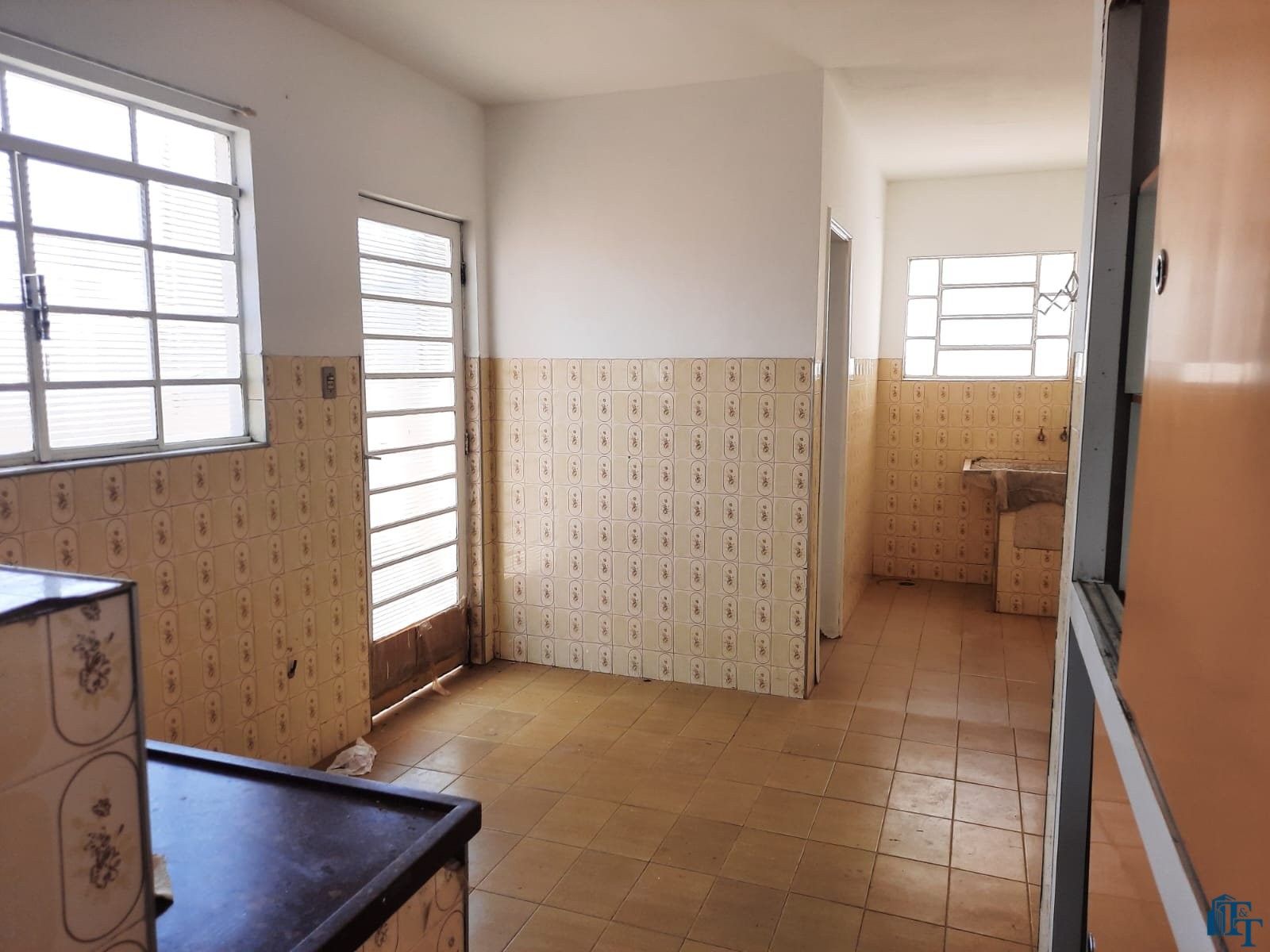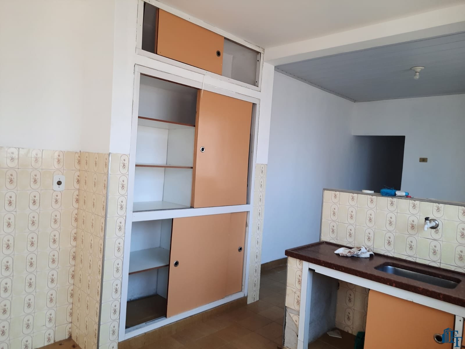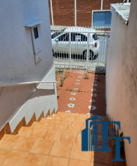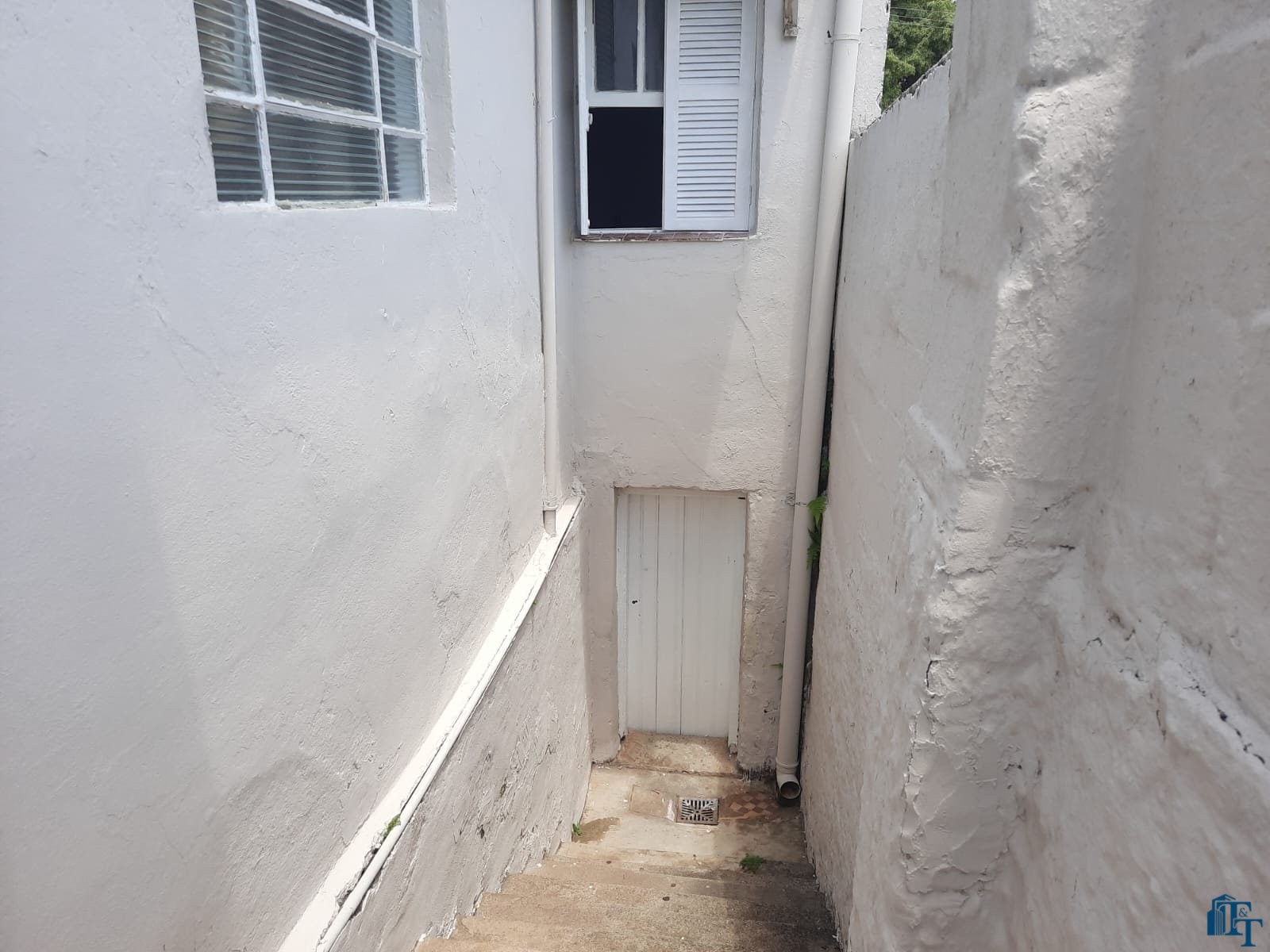 grande, corredor com acesso a cozinha e porão (saída de serviço) . Na frente 2 vagas de garagem, sendo uma coberta e outra descoberta. No banheiro social podemos contar com pia torre, box e espelhos. Para os dormitórios, sala, copa/sala de jantar, corredor a cobertura é de forro e a telha é de fibrocimento e para a cozinha, lavanderia e banheiro a cobertura é de laje. Portanto, o acesso à casa ocorre por portão grande da garagem e as portas com entrada social (porta de madeira maciça e de serviço (acesso pelo porão/garagem).