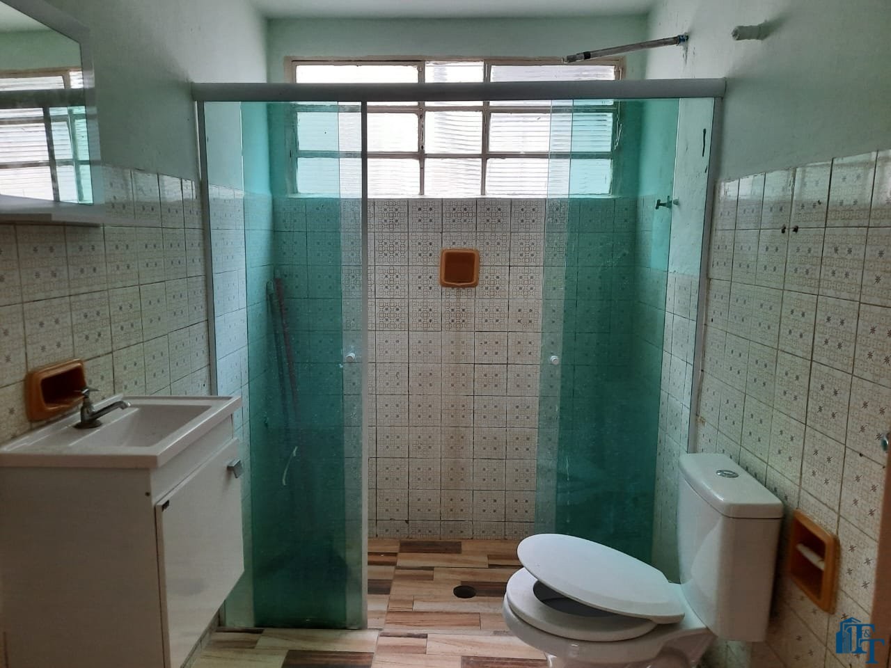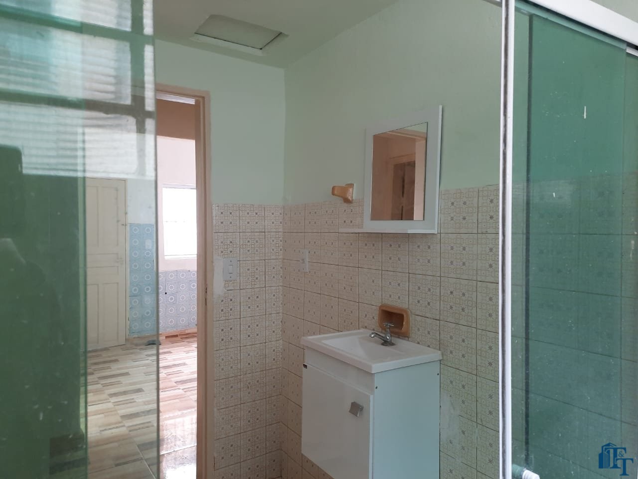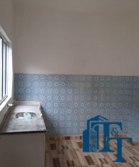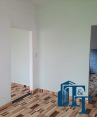 Cobertura interna em laje, garagem com telha fibrocimento e o piso para toda a casa foi revestido em cerâmica. Possuí armários na pia da cozinha e do banheiro (box de vidro novo). A casa não é geminada, pois foi construída considerando um recuo do muro que circunda a casa.